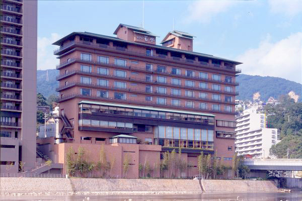 ホテル若水の部屋から眺める武庫川、遊歩道、街並みです。